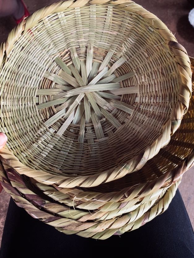 Her husband sits down next to her and starts weaving as well. It’s nothing short of a private show that to witness I feel is the biggest privilege. They smile and chat, but mostly work in silence. A small spring, the dancing grasses, chickens talking – are all you hear. In an hour two more plates are finished. The lot of 12, grasses cultivated, cut, refined, smoothed, wet, then woven – 50 + hours of work – sell for $3. That’s enough they say. That’s all they need.