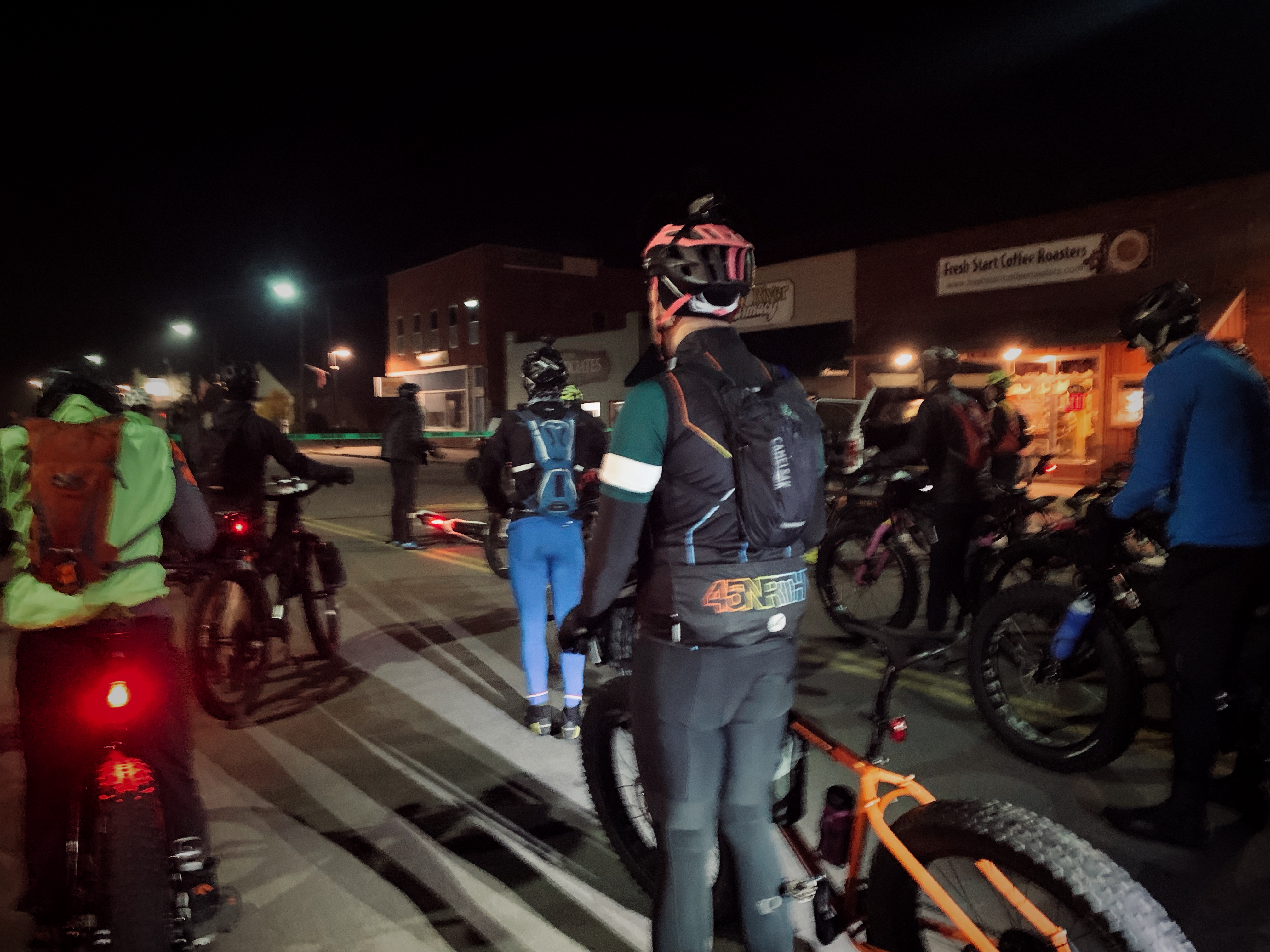 North, to the land of the Ojibwe & Sioux, new roads, the setting sun, the potential of Northern Lights, 109 miles of sugar sand and many new friends lie ahead. Any of these alone would have been more than enough, but The Fenton was all those and so much more. The previous day, Otso outfitted me with a Voytek. Picking it up was my first time touching a fat bike! The beauty of the opportunities this bike afforded were accentuated in the aquamarine and orange frame, now reflecting under the internal van lights as we rolled. Exiting the highway, a right turn took me in a straight shot to “The Cabin” where I had since been directed to pick up my race packet because fulfilling tomorrow’s illumination needs took 4 more minutes than allotted at a Walmart spotted en route off the highway. The race is a 5 am departure – artificial sun is pretty crucial.